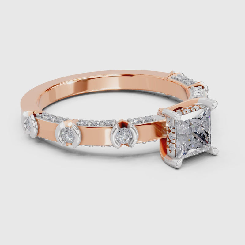 0.89 Ct Princess Shape Solitaire Diamond Ring| 14K Rose Gold