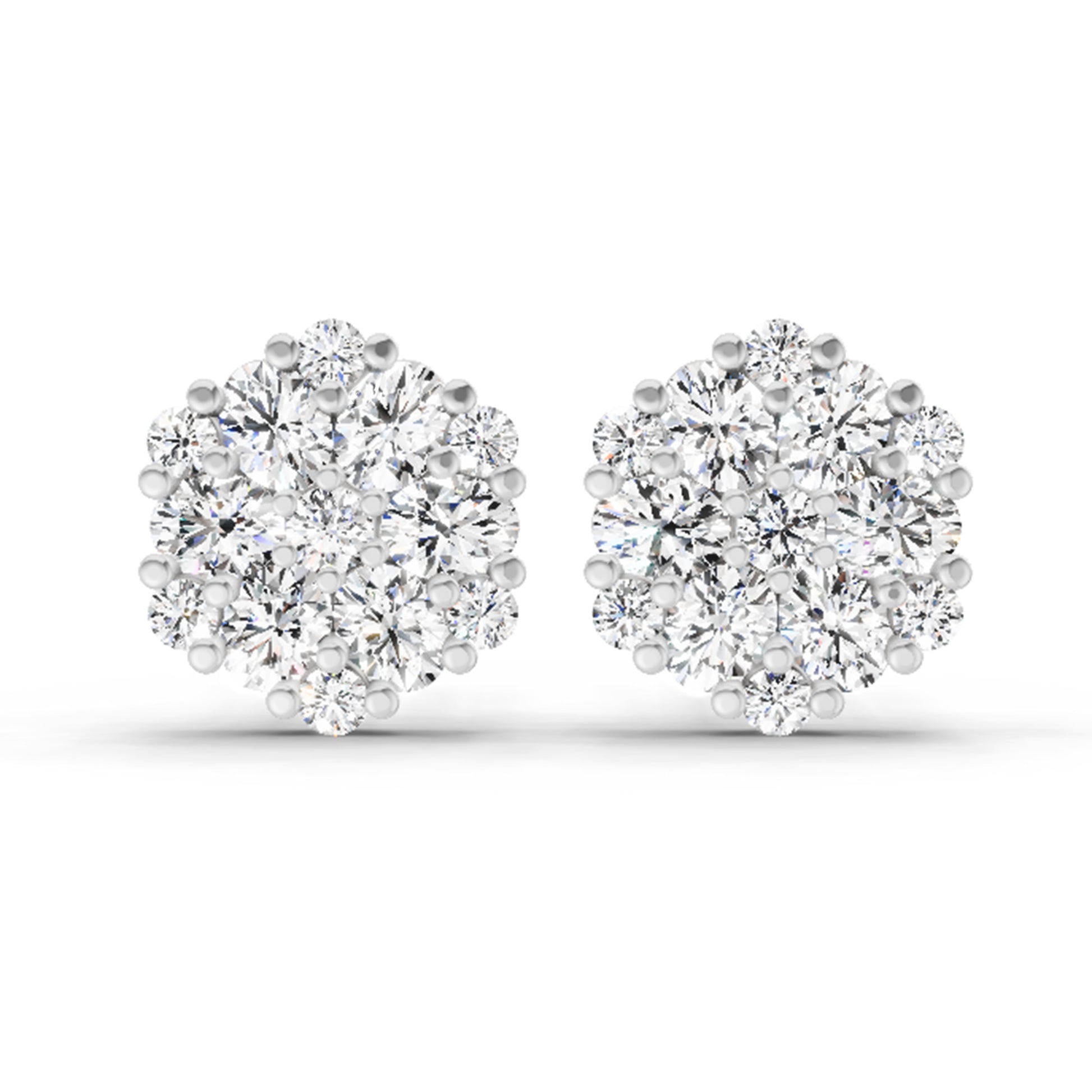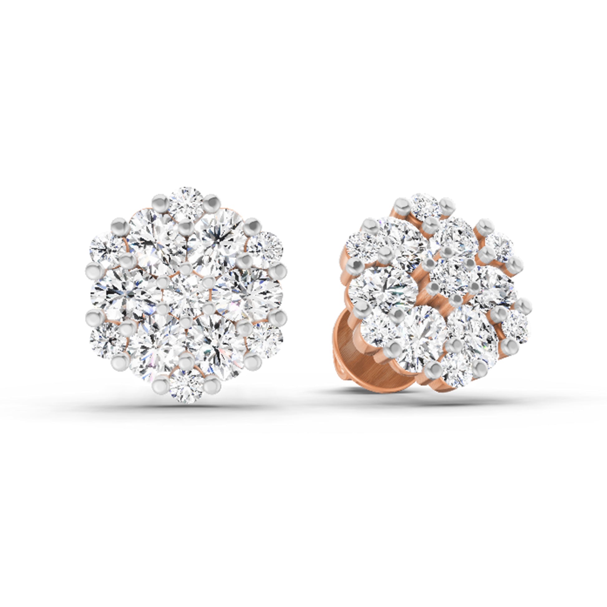 2.14 Ct Round Cluster Stud Earrings | 14K Rose Gold