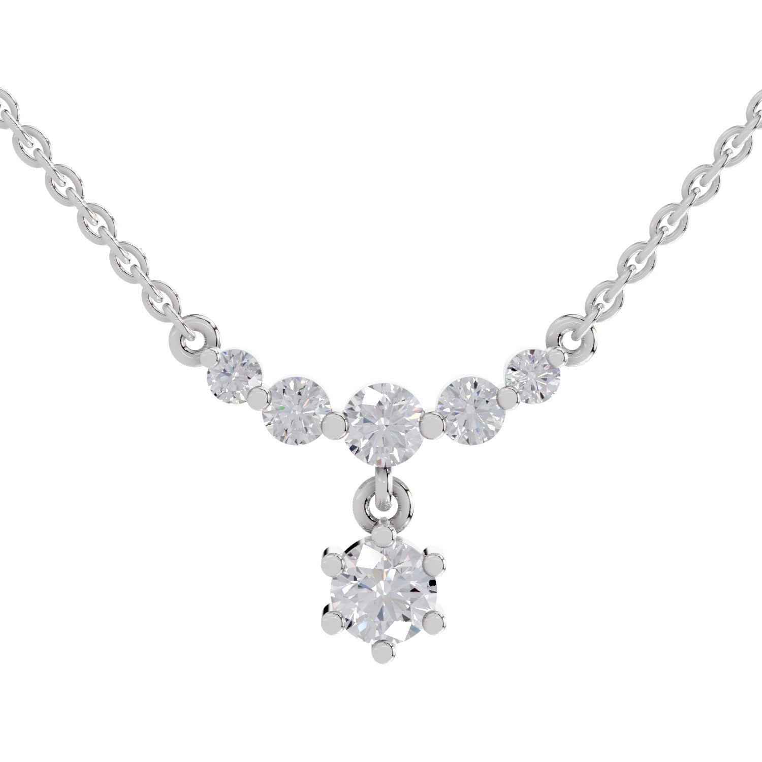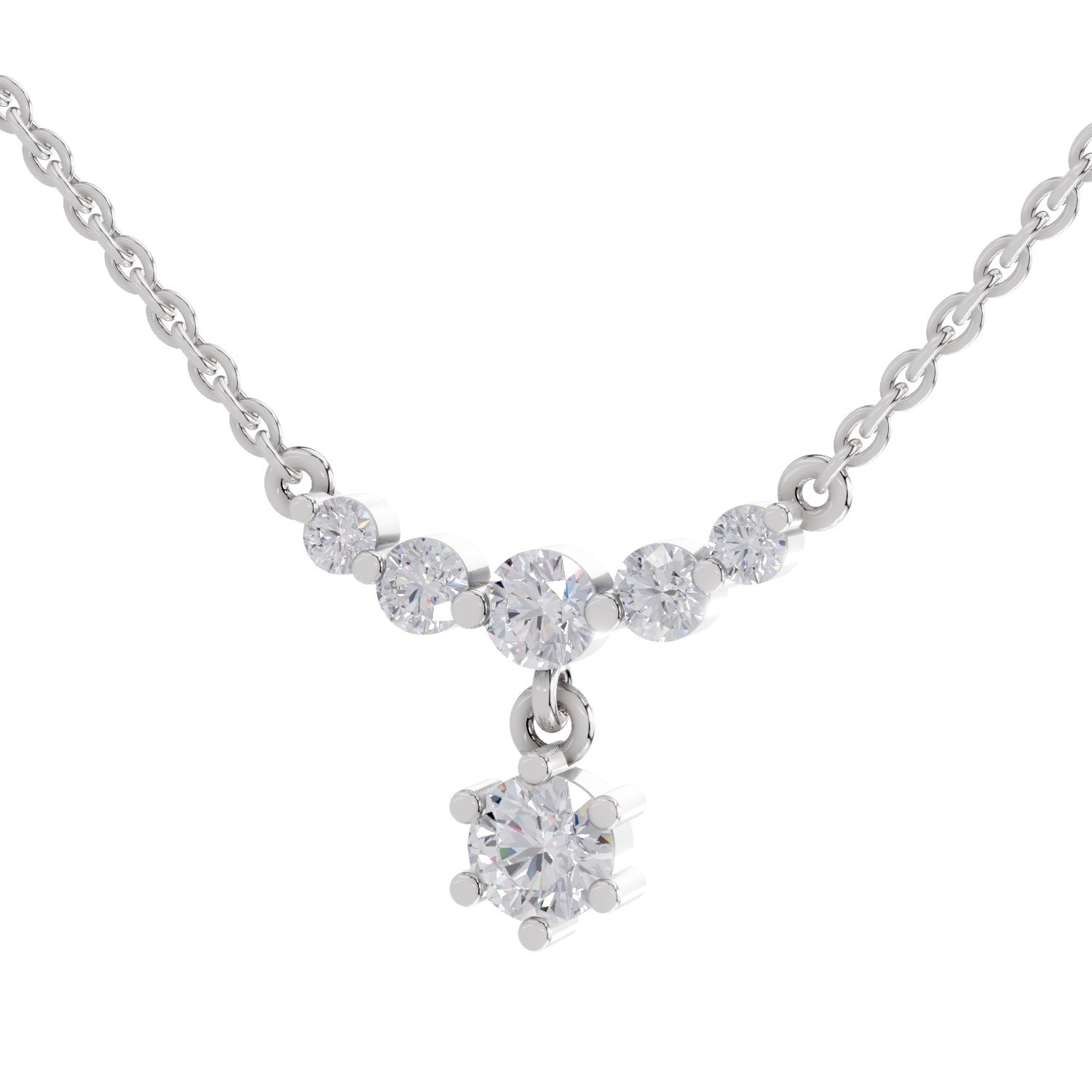 1.13 Ct Round Shape Graduated Diamond Drop Necklace | 14K White Gold