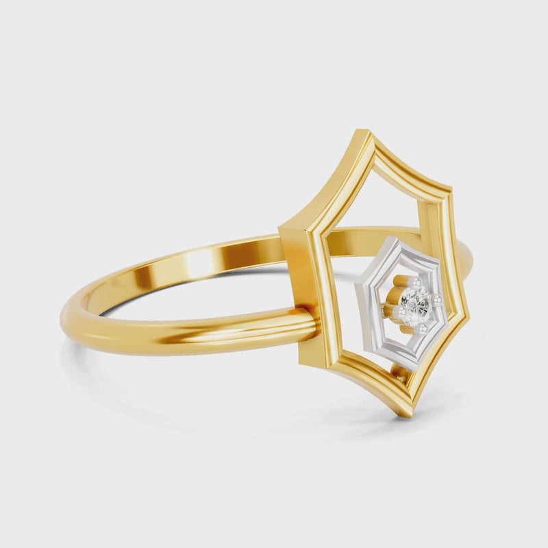 0.02 Carat | 925 Sterling Silver Gold Plated Hexagon Fashion Ring