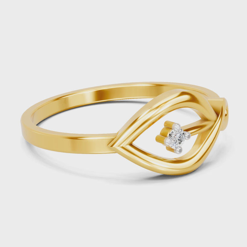 0.02 Carat | 925 Sterling Silver Gold Plated Leaf Ring