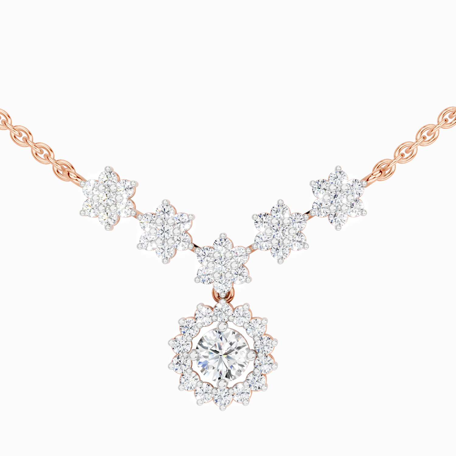 1.16 Carat Round Floral Necklace | 14K Rose Gold