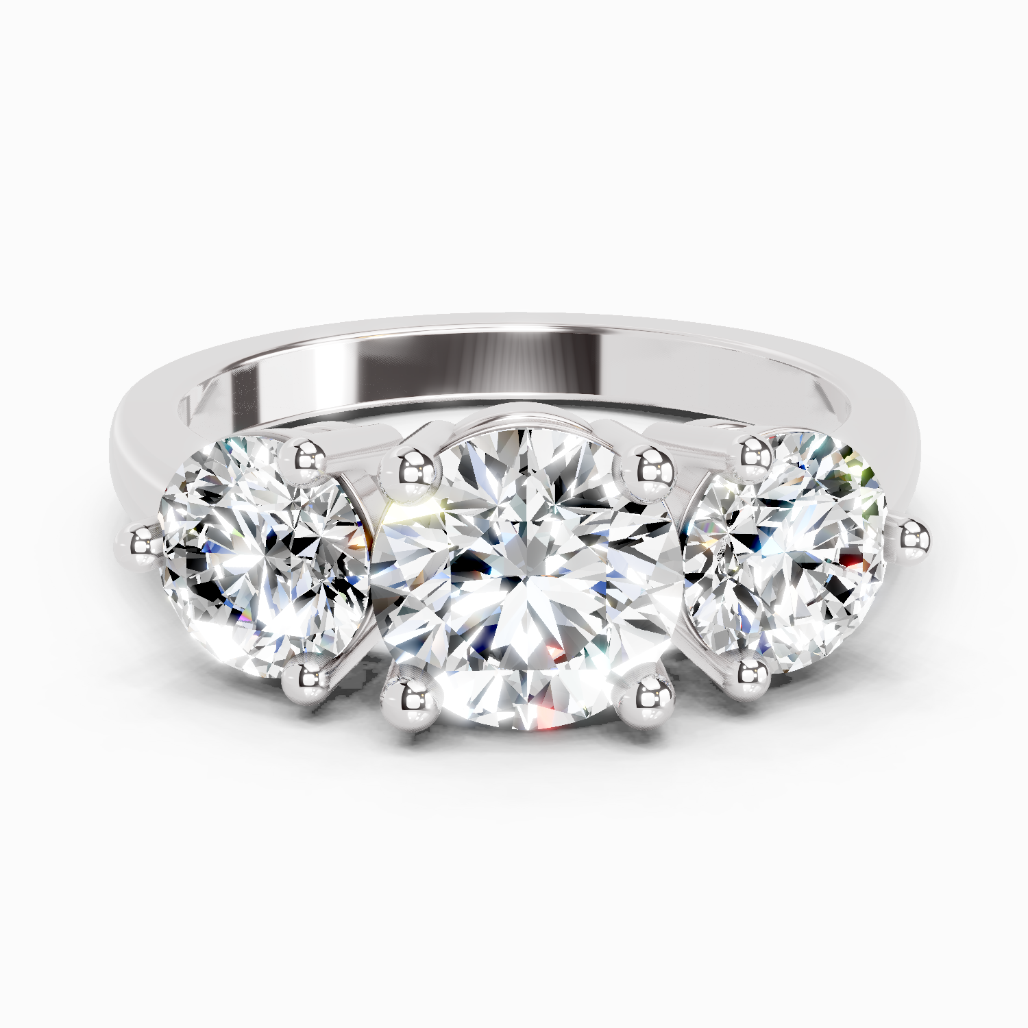 2 Ct Round Three Stone Ring | 14K White Gold