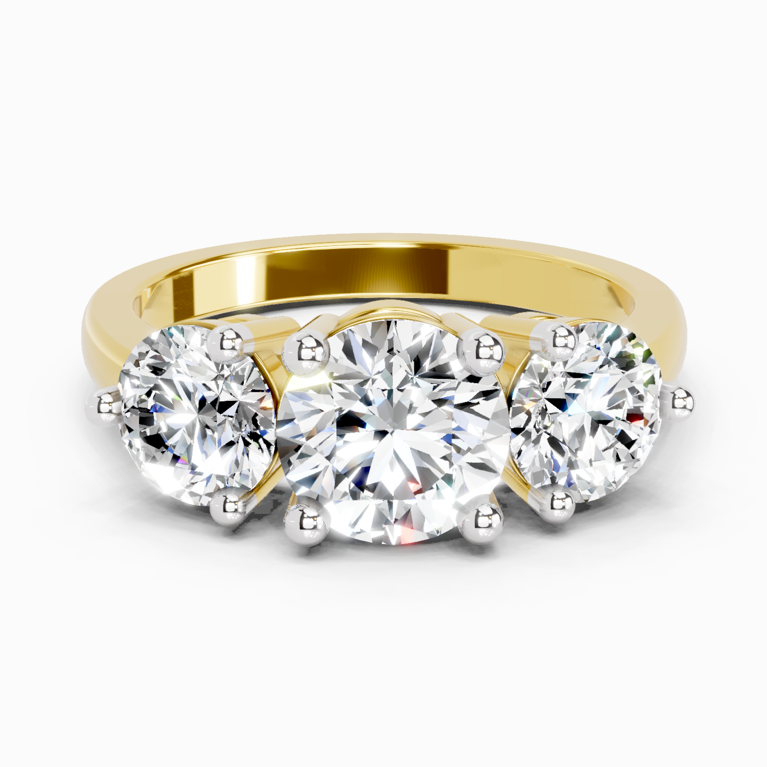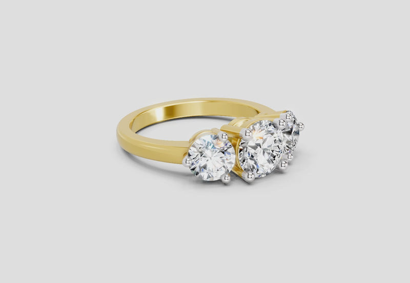 2 Ct Round Three Stone Ring | 14K Yellow Gold