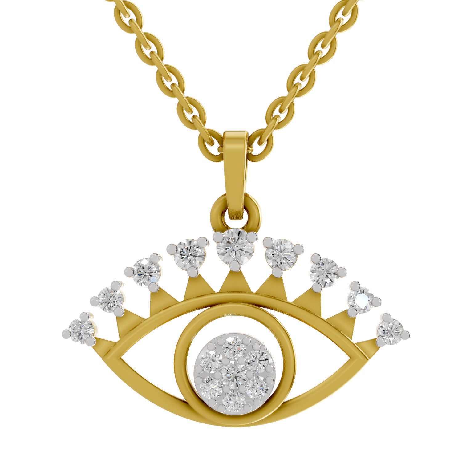 0.38 Round Shape | 925 Sterling Silver Gold Plated Evil Eye Pendant Necklace